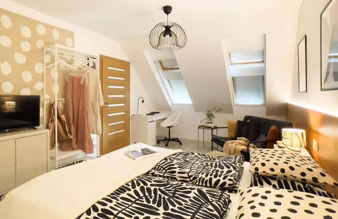 Obiekt zapewnia gościom wygodę korzystania z udogodnień do samodzielnego przygotowywania posiłków, takich jak pełnowymiarowa kuchnia i miejsce do jedzenia. Na miejscu do dyspozycji Gości także kuchenka mikrofalowa, czajnik elektryczny i lodówka, urządzenie do parzenia kawy/herbaty. Obiekt noclegowy położony jest w niewielkiej odległości od Stex House, gdzie serwowane są dania kuchni środkowoeuropejskiej. Międzynarodowe lotnisko Budapeszt im. Ferenca Liszta oddalone jest od obiektu o 25 km, a dworzec Harminckettesek tere - kilka metrów stąd.